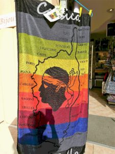 コルシカ旗は、顔の黒いムーア人の横顔をあしらったもので、インパクト度からして絶対に目を惹き付けられます~💡