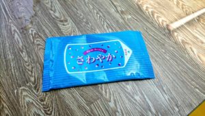 手で食べる時、重宝するのが日本のコンパクトタイプのウェット・ティッシュです。