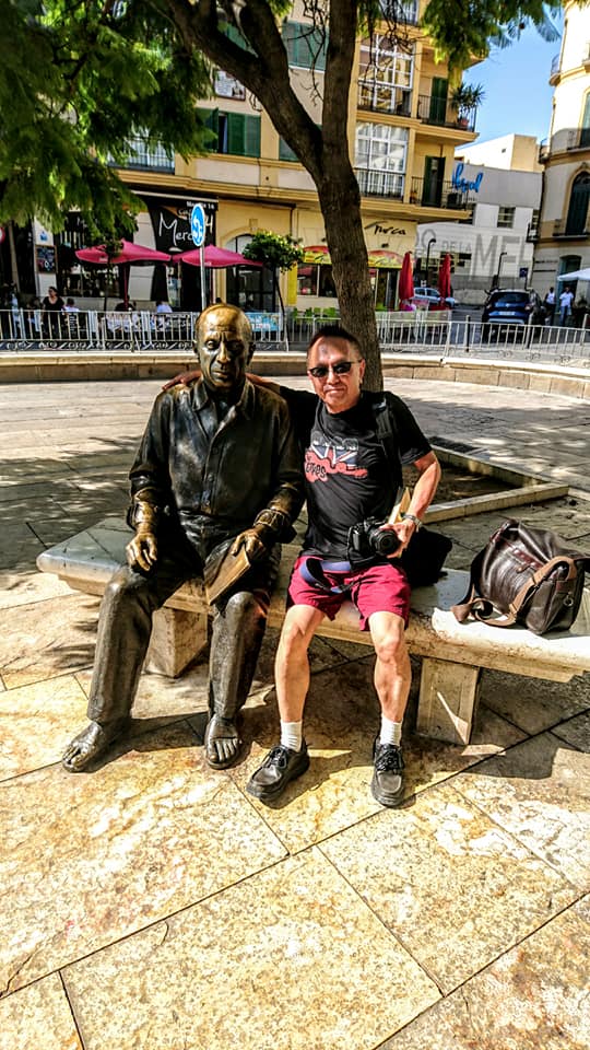 ピカソ美術館とピカソの生家を訪れ、そのあと公園でピカソさんとツーショットできました(笑)。
