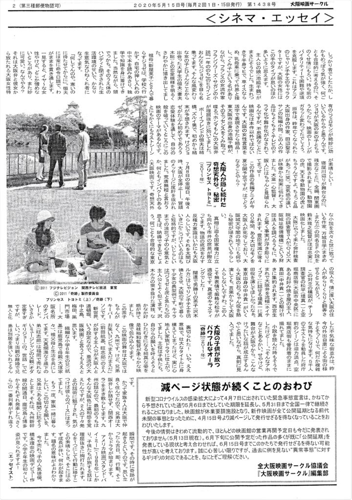 かつて拙著『ぜんぶ大阪の映画やねん』(平凡社、2000年)でそれらを網羅しましたが、「大阪映画サークル」の最新号で、2000年以降の映画の中から独断で選んだ4作品を紹介しています。