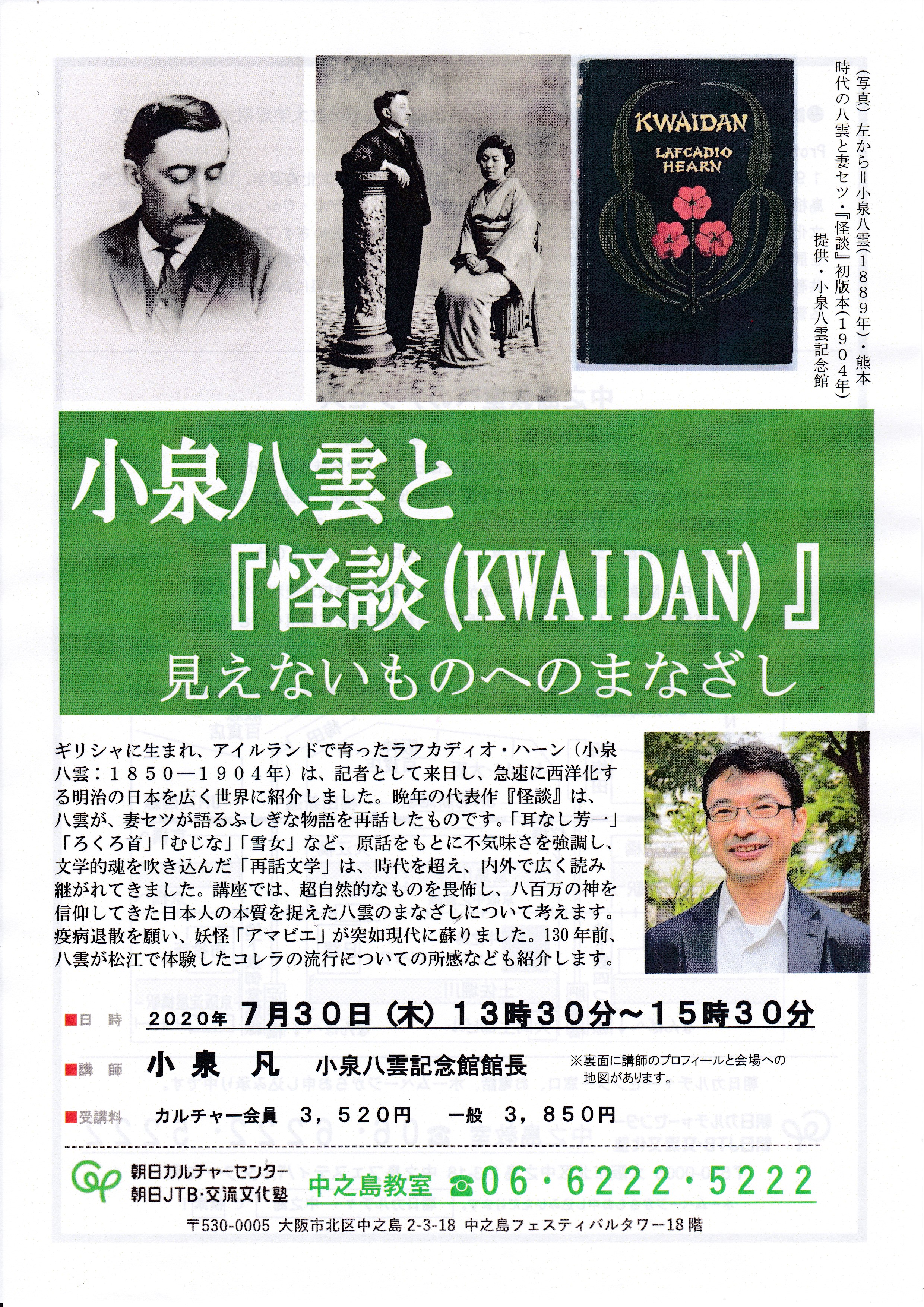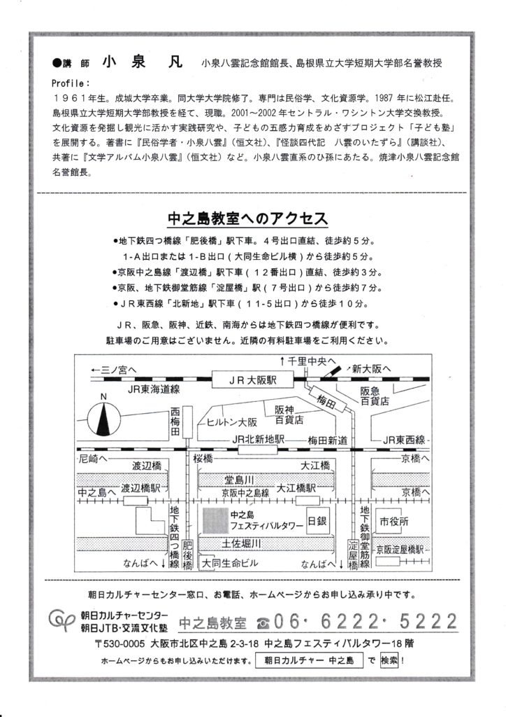 講座では、八雲研究家の第一人者である凡さんならではの切り口で、目に見えない世界の本質を語ってくれはると思います。