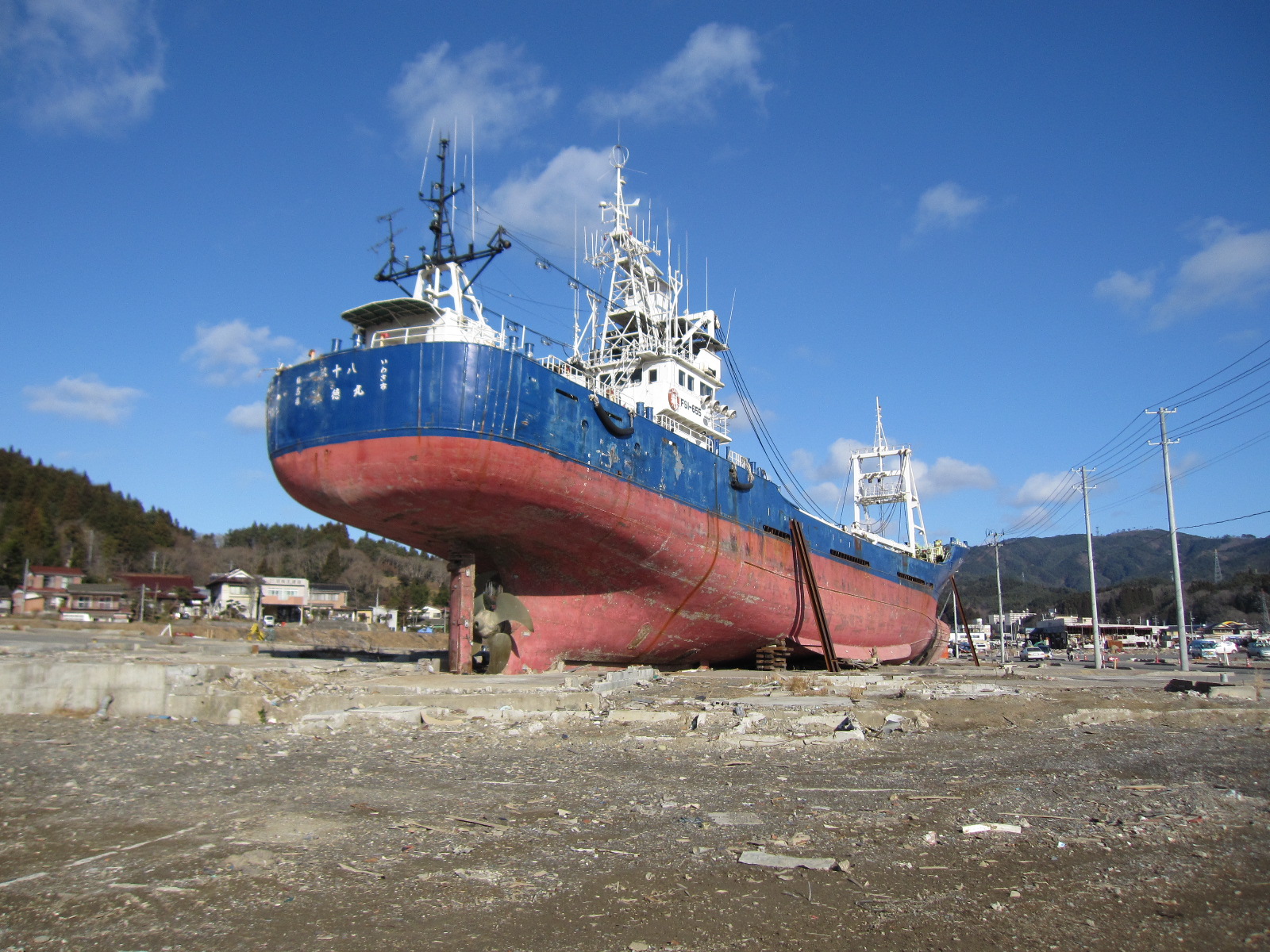 そして、津波で打ち上げられたあの船を目撃しました。