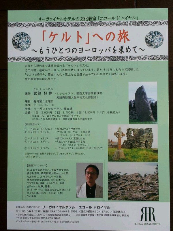大阪・中之島のリーガロイヤルホテルの文化教室「エコールドロイヤル」で、ぼくのライフワーク「ケルト」の講座が始まります。