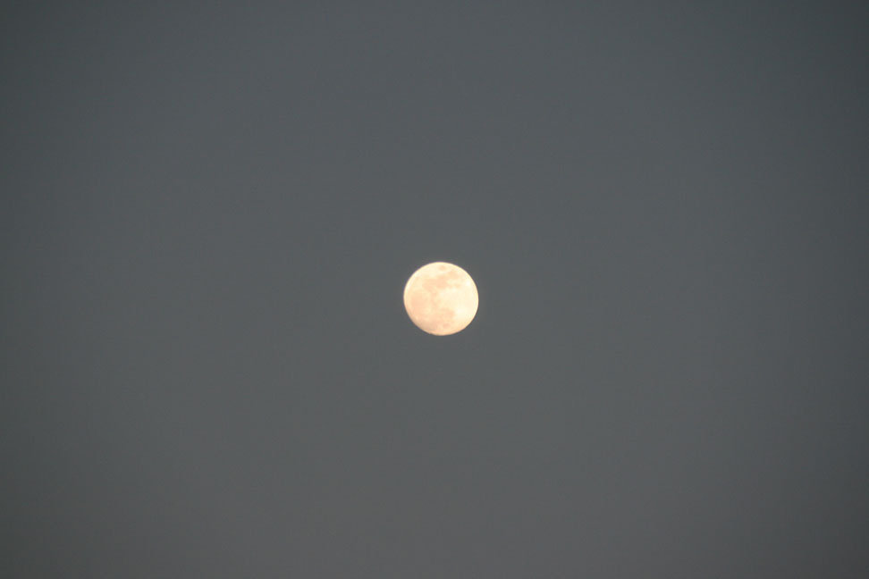 そんなことを考えながら、帰宅するや、さらに高く昇ったお月さんを200ミリの望遠レンズで激写しました。トホホ……、被写体が小さい。すみません、クリックして見てください。