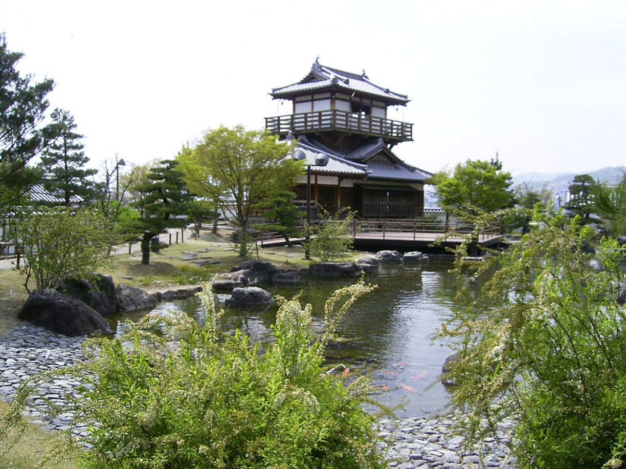 桜で知られる五月山公園へと歩を進めると、右手の丘のうえに天守閣を発見。あんなとこにお城があったかな~?? 疑問と好奇心に突き動かされ、その丘をめざしました。