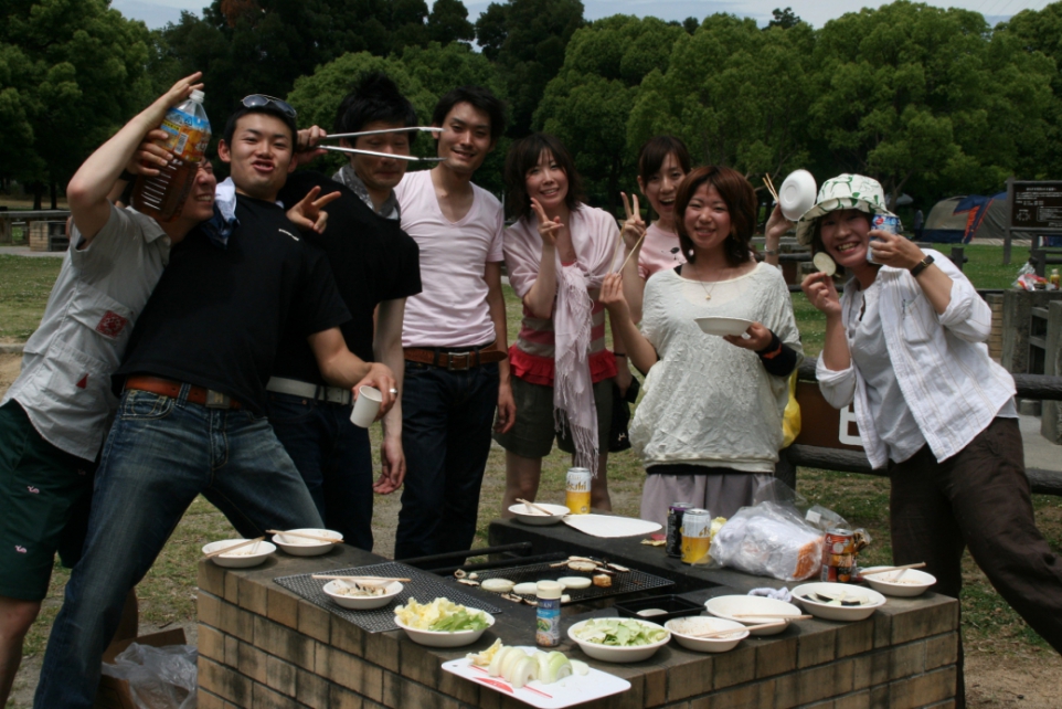 3年前に卒業した大学のゼミの教え子たちからお誘いがあり、大阪・堺の大泉緑地公園で開催~。BBQ日和でなによりでした。