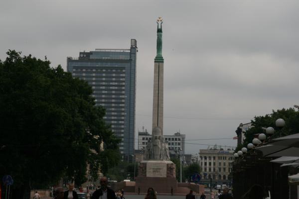 旧市街の西側に高さ51メートルの塔がそびえています。1935年、ソ連からの最初の独立を記念して建てられた自由記念碑です。塔のてっぺんに女性が立っています。