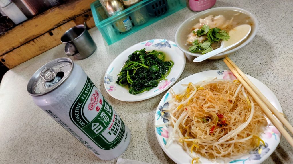 晩飯は、飛び込みで入った熟年夫婦の店で、ビーフン+青菜の煮たモン+小エビのスープ。
