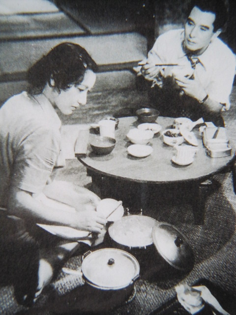 夫婦に扮したのが往年の大スター、上原謙と原節子。