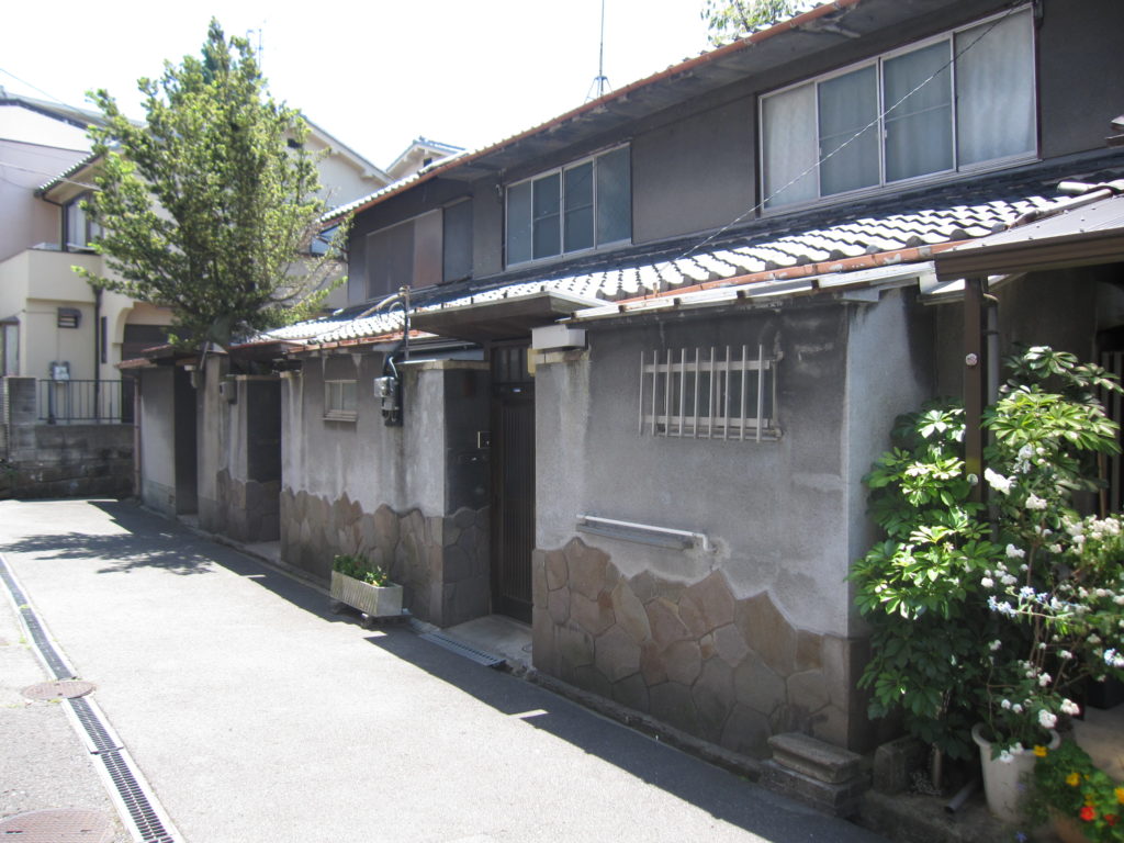 名匠・成瀬巳喜男監督の名作『めし』(1951)でロケ撮影された、阪堺電車「天神ノ森」駅近くの棟割長屋(大阪市西成区)です。