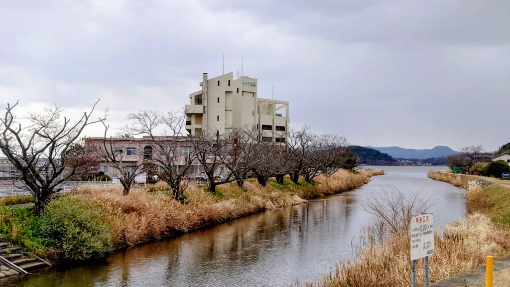 いかにも山陰の冬らしく、鈍色の景色に包まれた、鏡のような水面が何だかモノトーンの水彩画のよう。