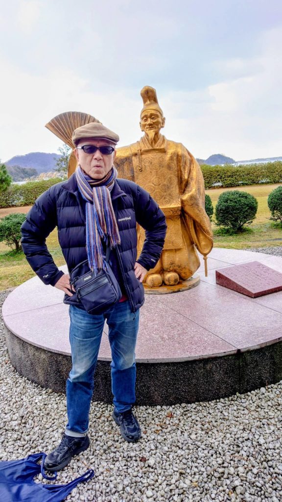 当地で古くから言い伝えられている「湖山長者」の黄金像とツーショットで収まってから、池を眺望できる最上階の大浴場温泉に浸り、この1年を振り返っていました。