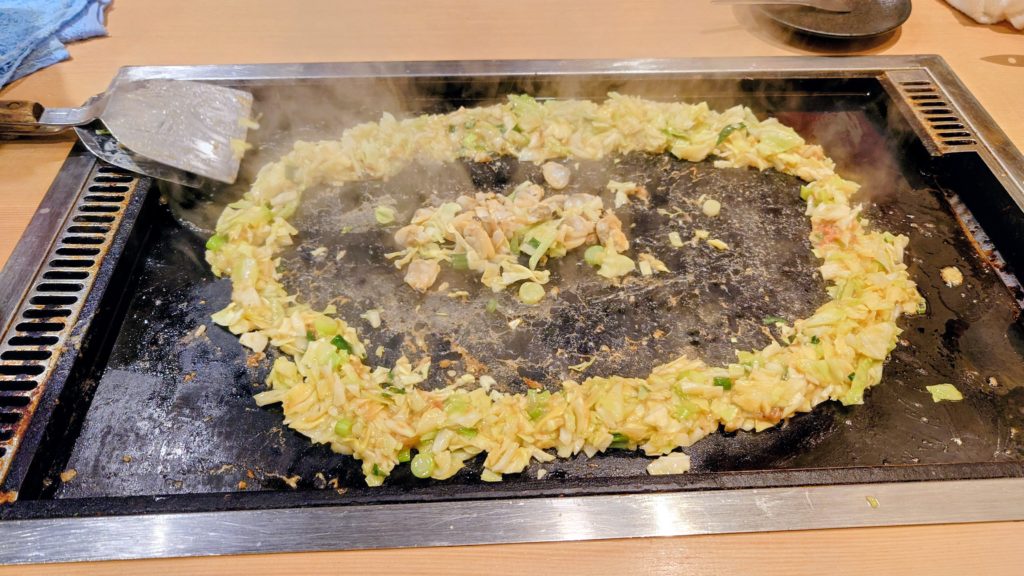 若い女性店員さんが鉄板の上で手際よく具材を調理していく様に見とれてしまった。