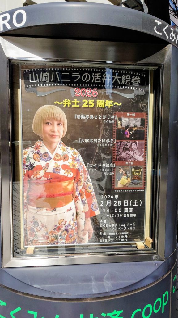 活動写真弁士の山崎バニラさんから、この日開催される『山崎バニラの活弁大絵巻 2026〜弁士25周年〜』にご招待いただいたからです。