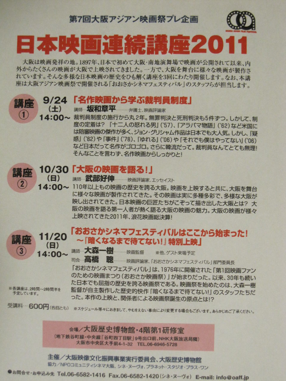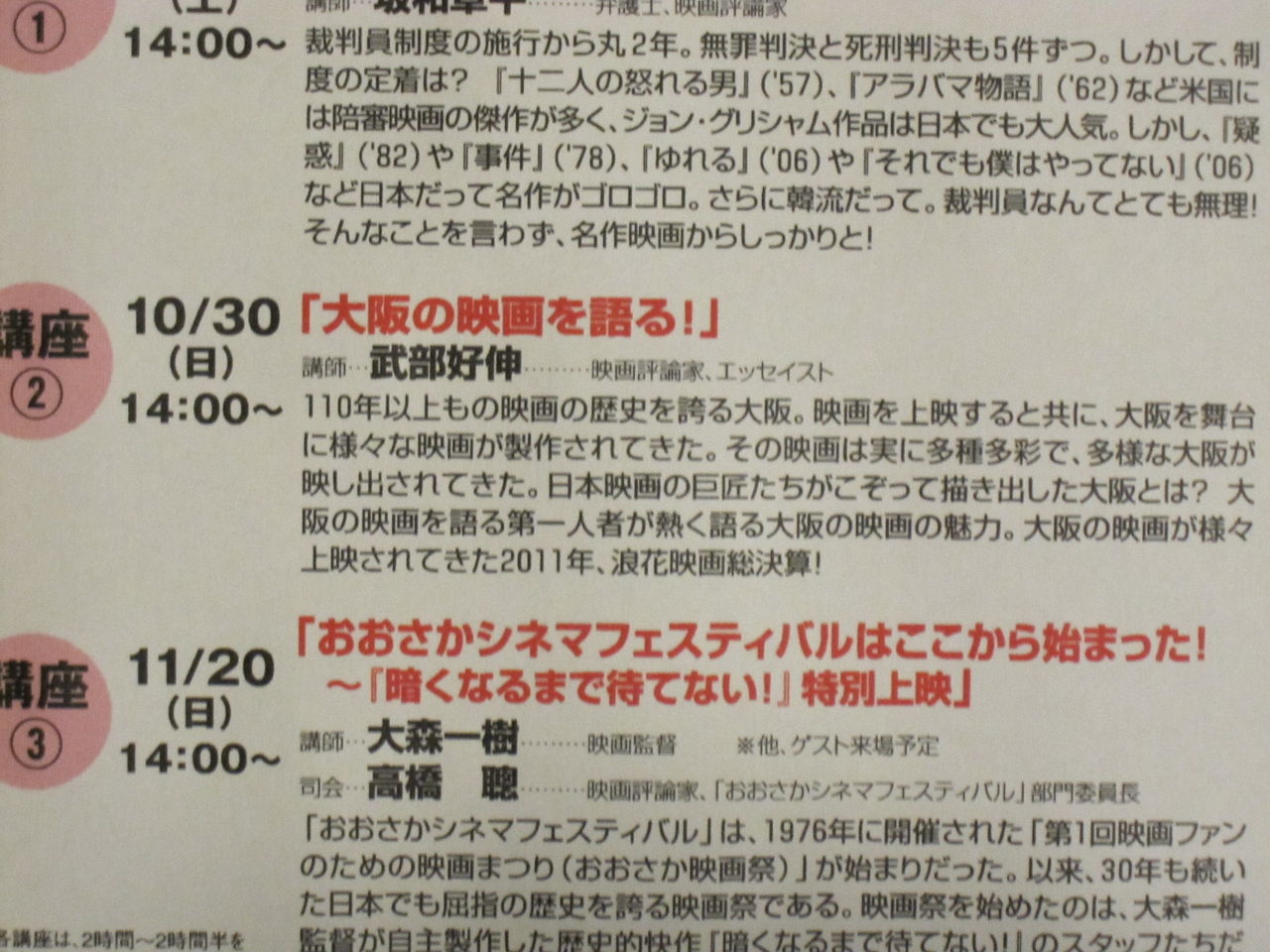 「大阪の映画を語る!」~日本映画連続講座2011