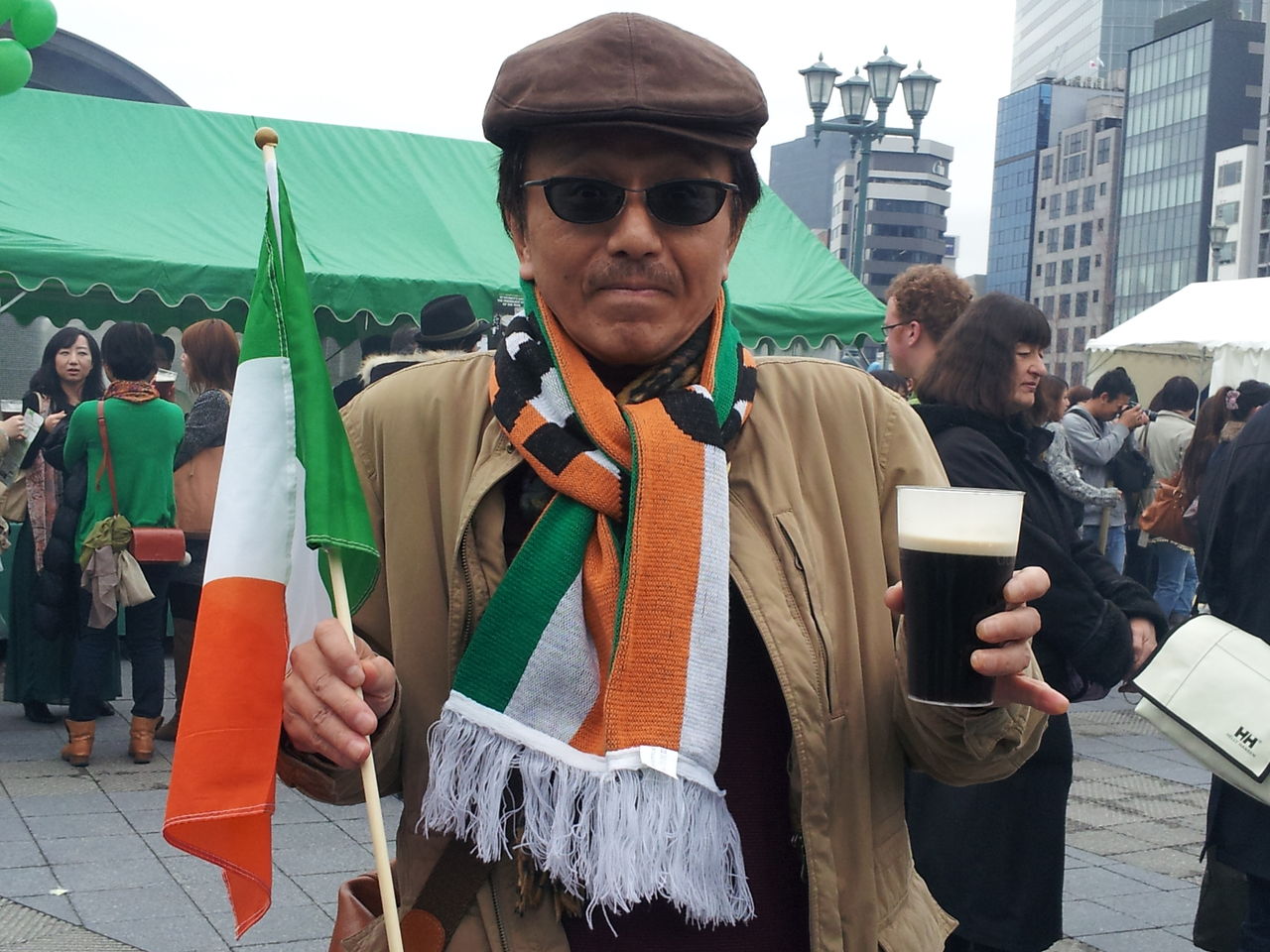 ぼくもアイルランド国旗を手にし、アイルランドのタオルを首に巻いて参加しました。