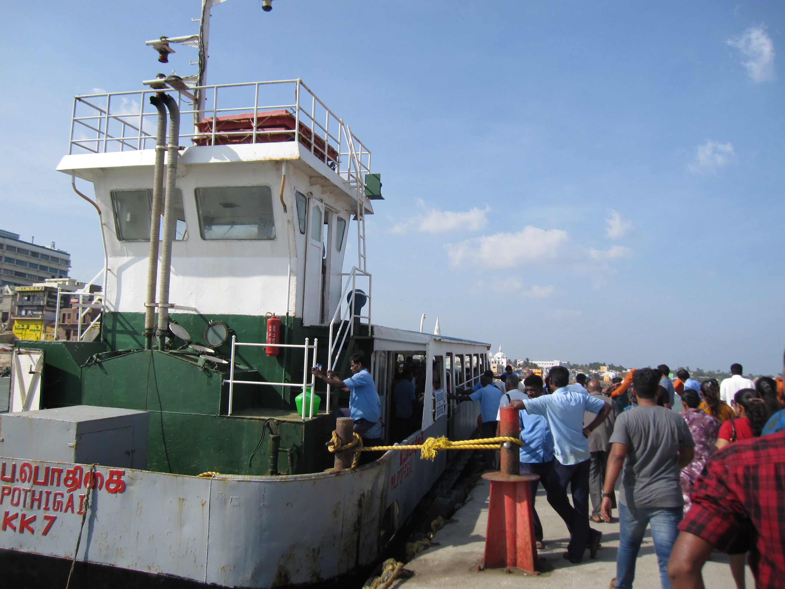 左手には、6世紀の高名な詩人ティルヴァッルヴァルの立像(高さ40.5㍍)が屹立する島と記念堂が建つ島が浮かんでいます。