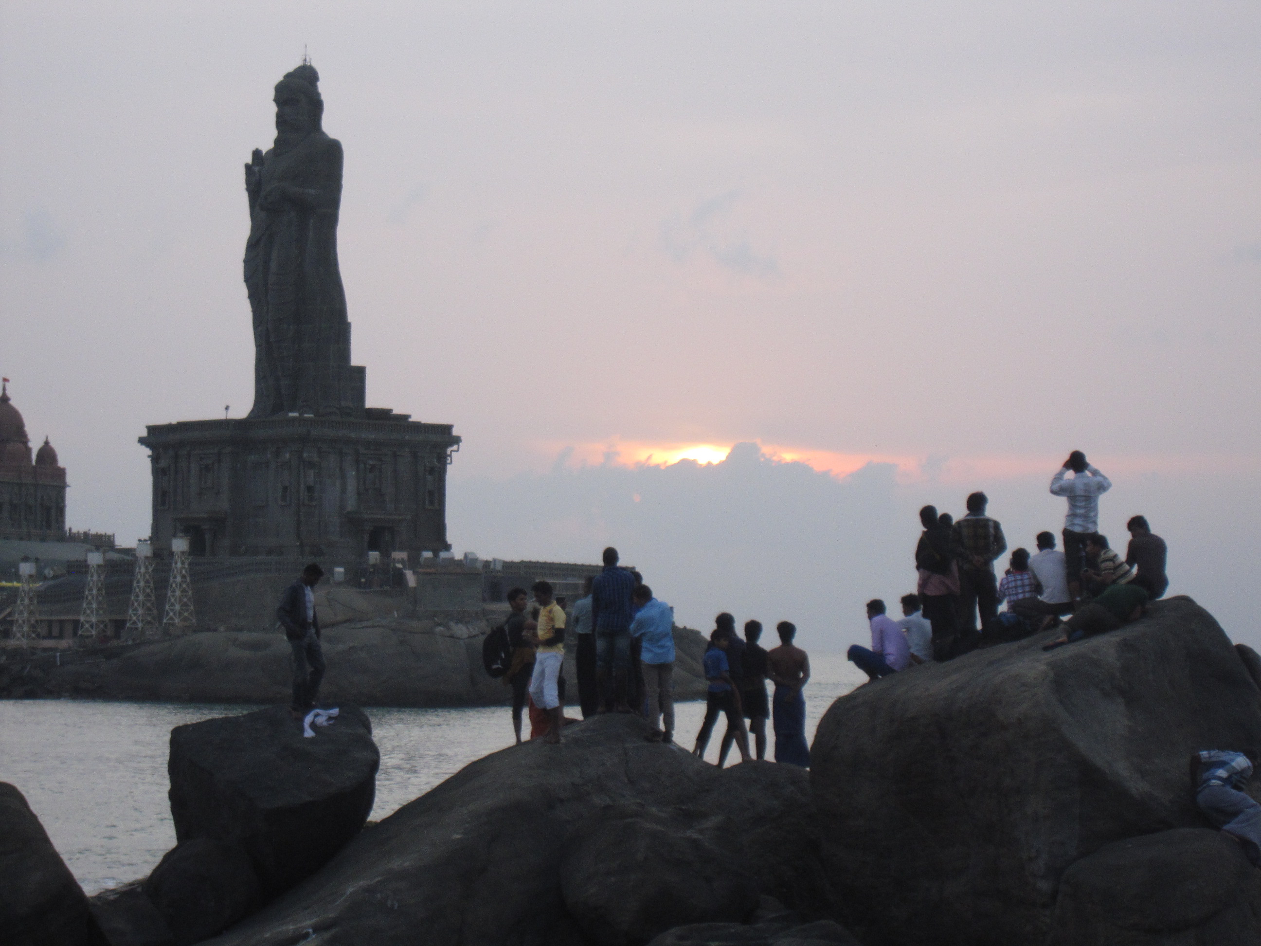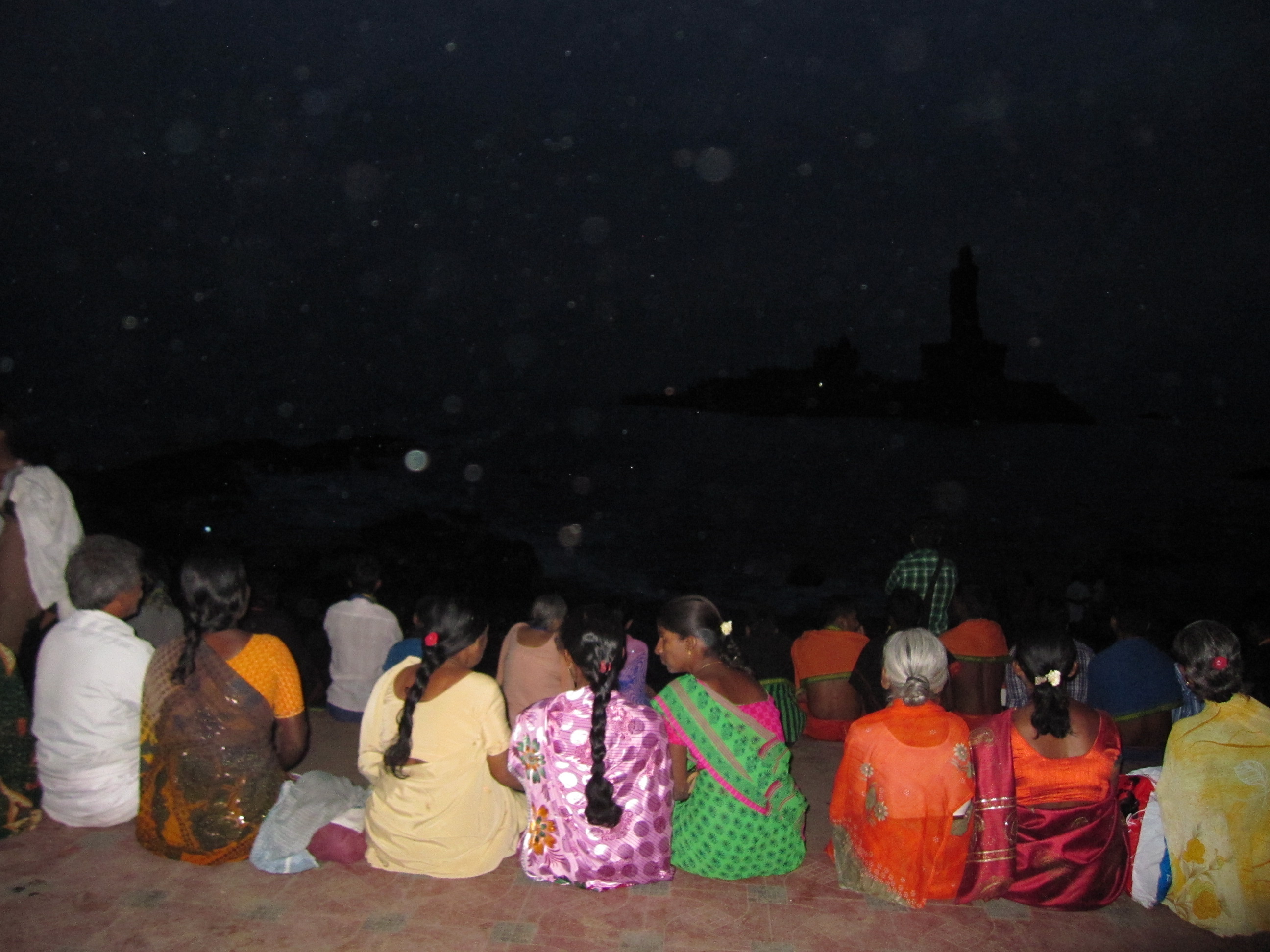 きのう、西のアラビア海に沈む夕陽を堪能したので、今朝は東のベンガル湾から上ってくる朝陽を拝もうと午前5時半に起きて、暗闇の中、岬に足を向けました。