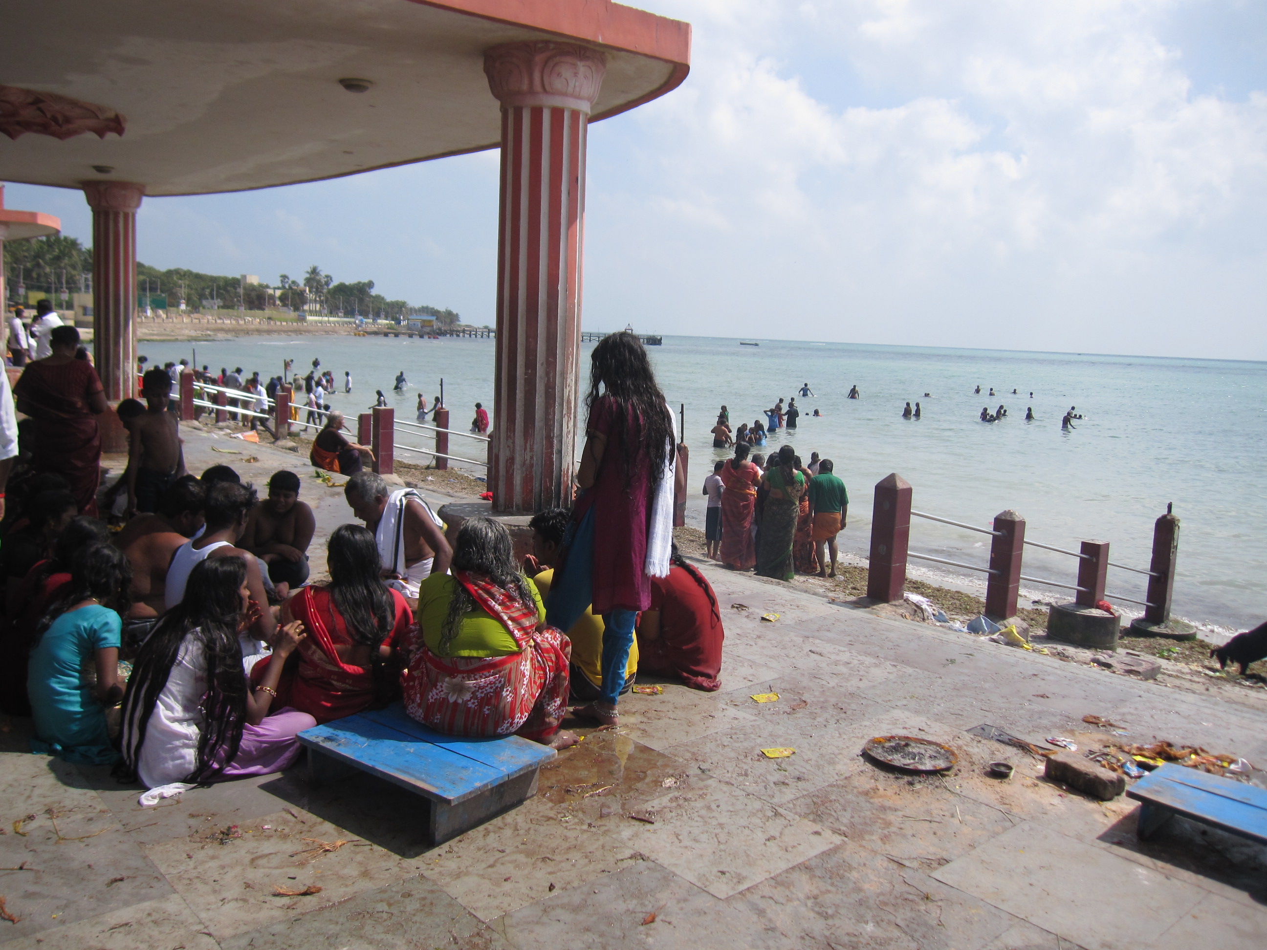 多くの巡礼者が海水に身を浸し、身体を清めてはります。