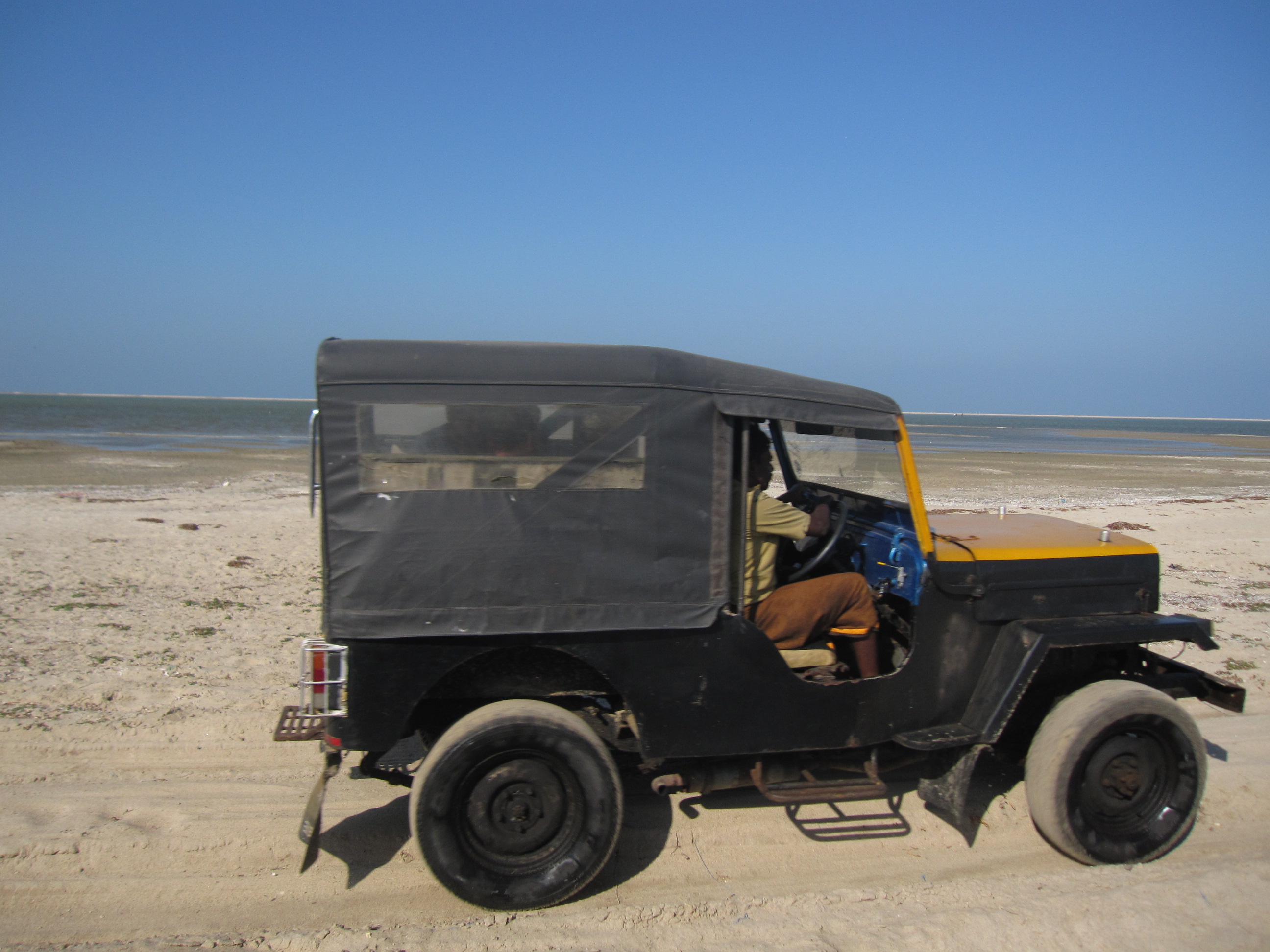 ワゴンはいきなり海の中に突っ込み、それから浜辺へ上がり、また海へ。