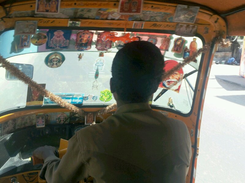 リクシャーに乗れば、フロントガラスに自分の信じる神の絵画が貼られています。