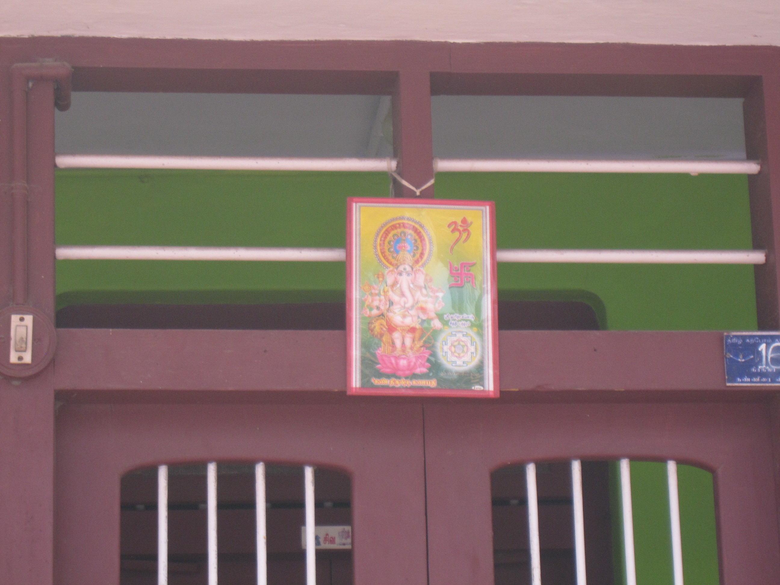 ヒンドゥの神々をあしらった彩色画がそこいらに貼られています。