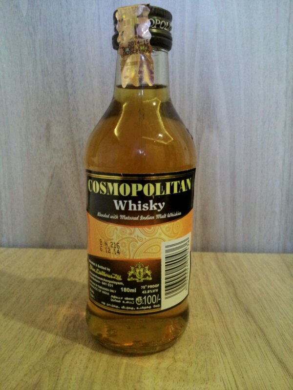 日本には絶対に入っていない「COSMOPOLITAN」というインド産ウイスキーが100ルピーで売っていたので、お土産にと6本まとめて買いました。