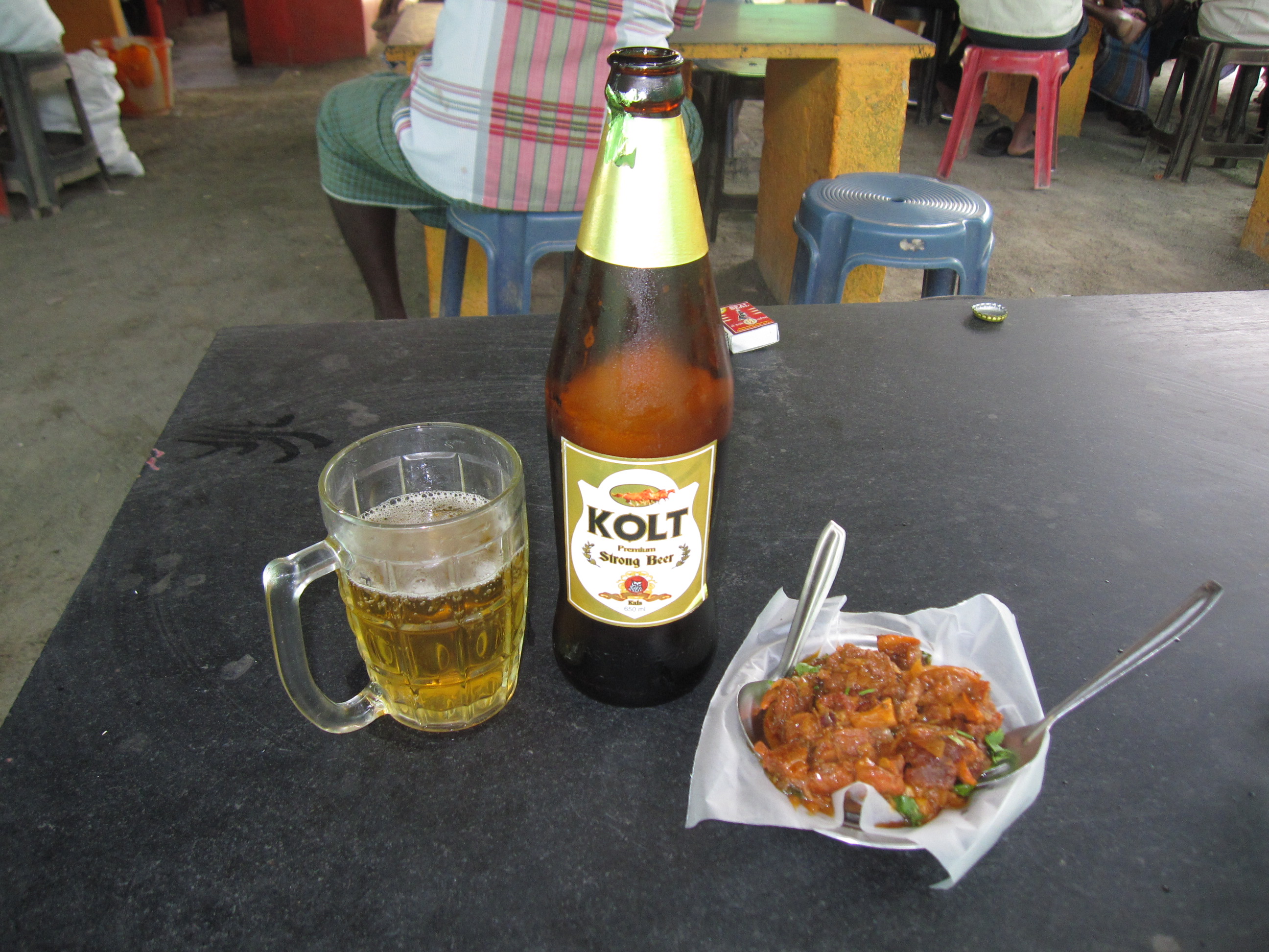 そんな切望感を抱き、ティルティラパッリの町のバーで、付きだしのピリ辛チキンを冷えていない(笑)ビールで味わいました。