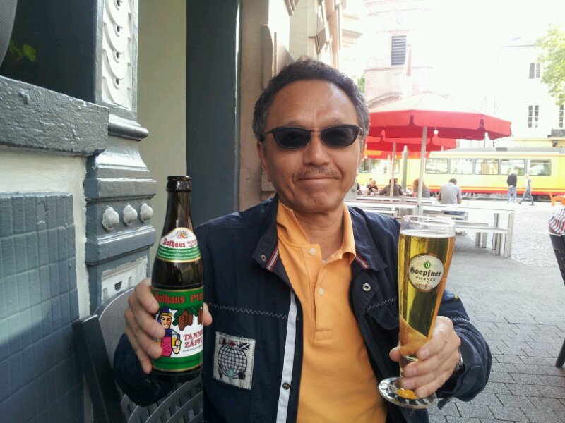 不思議に思っていたら、急に喉が乾き、路地裏のカフェで美味な地ビールを堪能してます~(*^^*)