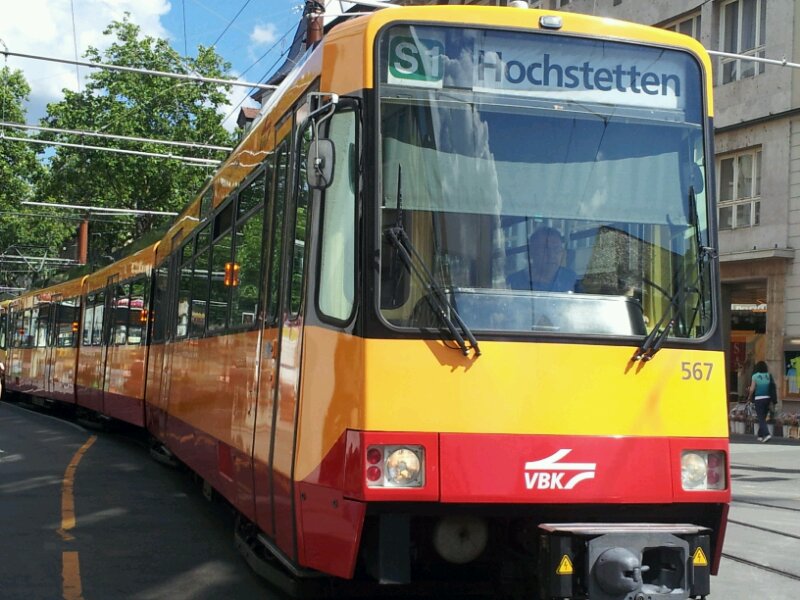 フランス国境に近いドイツ南西部のカールスルーエ(Karlsruhe)の街に来ると、親近感を覚える路面電車が走っていました~(^-^)