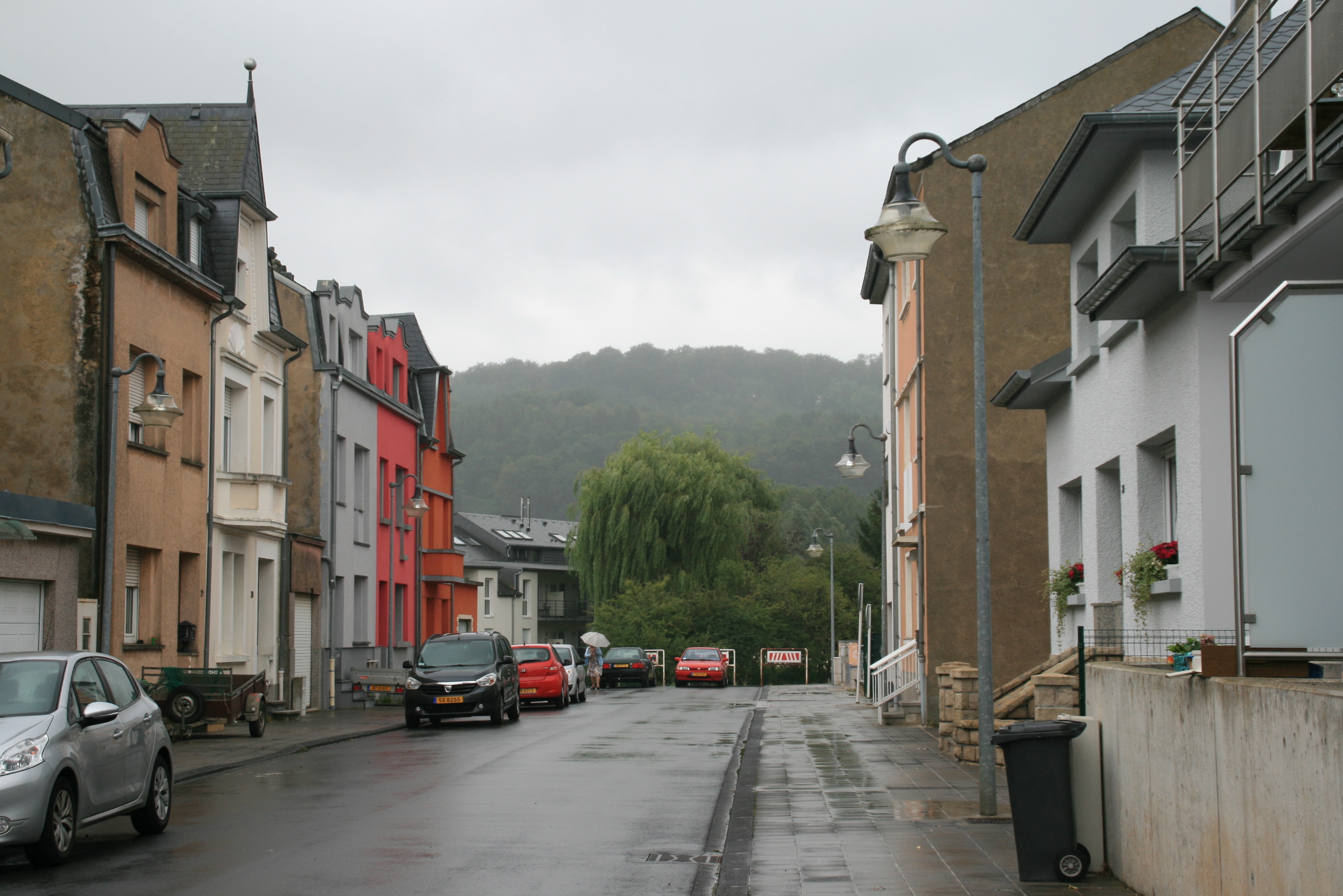 西部のロダンジュ(Rodange)という駅で降り、雨の中、えっちらおっちらと丘を目指しました。
