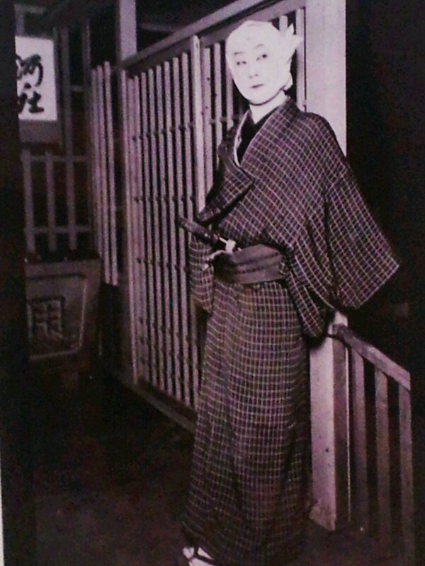 その当たり役、紙屋治兵衛に扮した有名な舞台写真です。