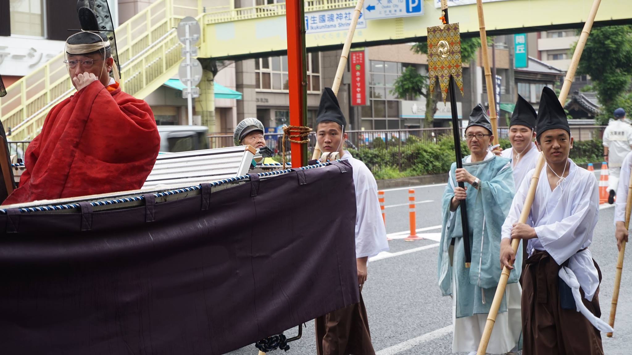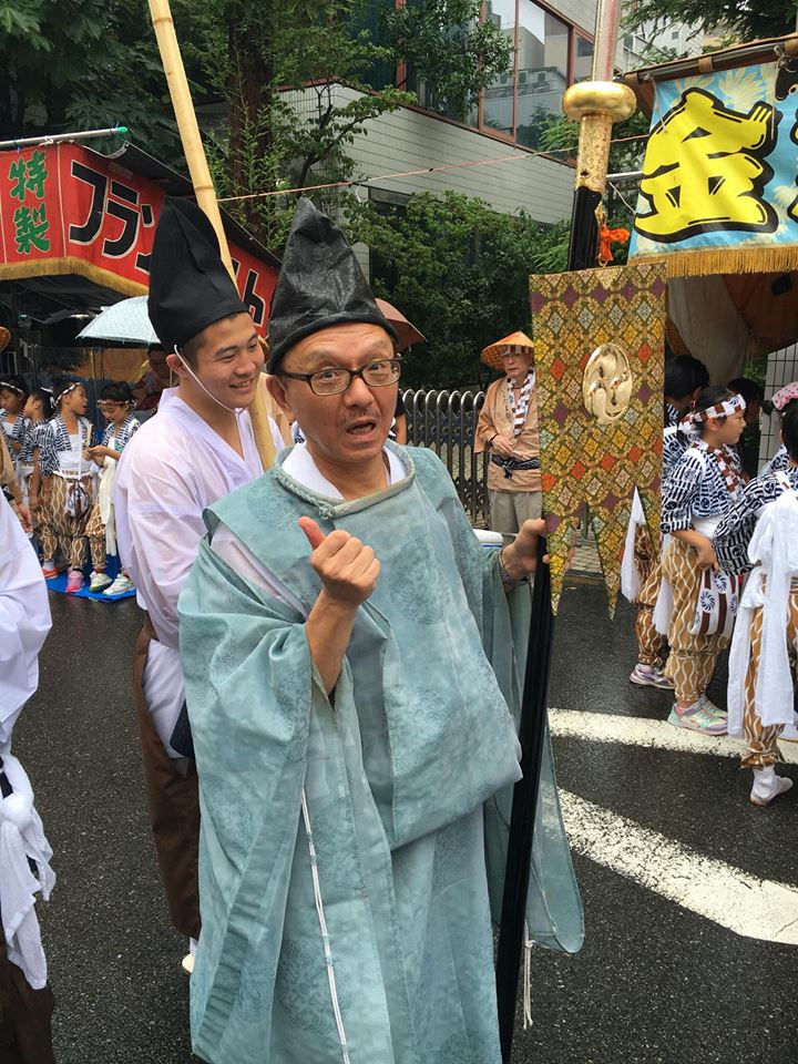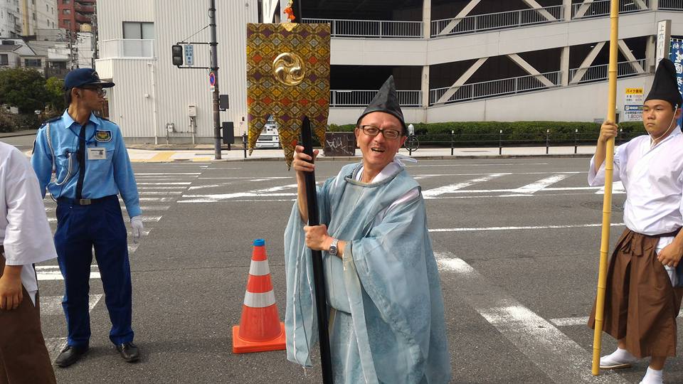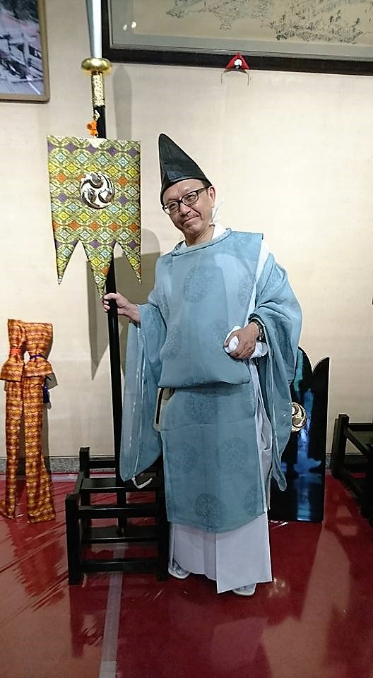 「おわたり」では、狩衣に烏帽子という「平安時代の食い倒れ太郎」みたいな感じで、「御鉾」をしっかり携え、熱暑の中、歩いていました。