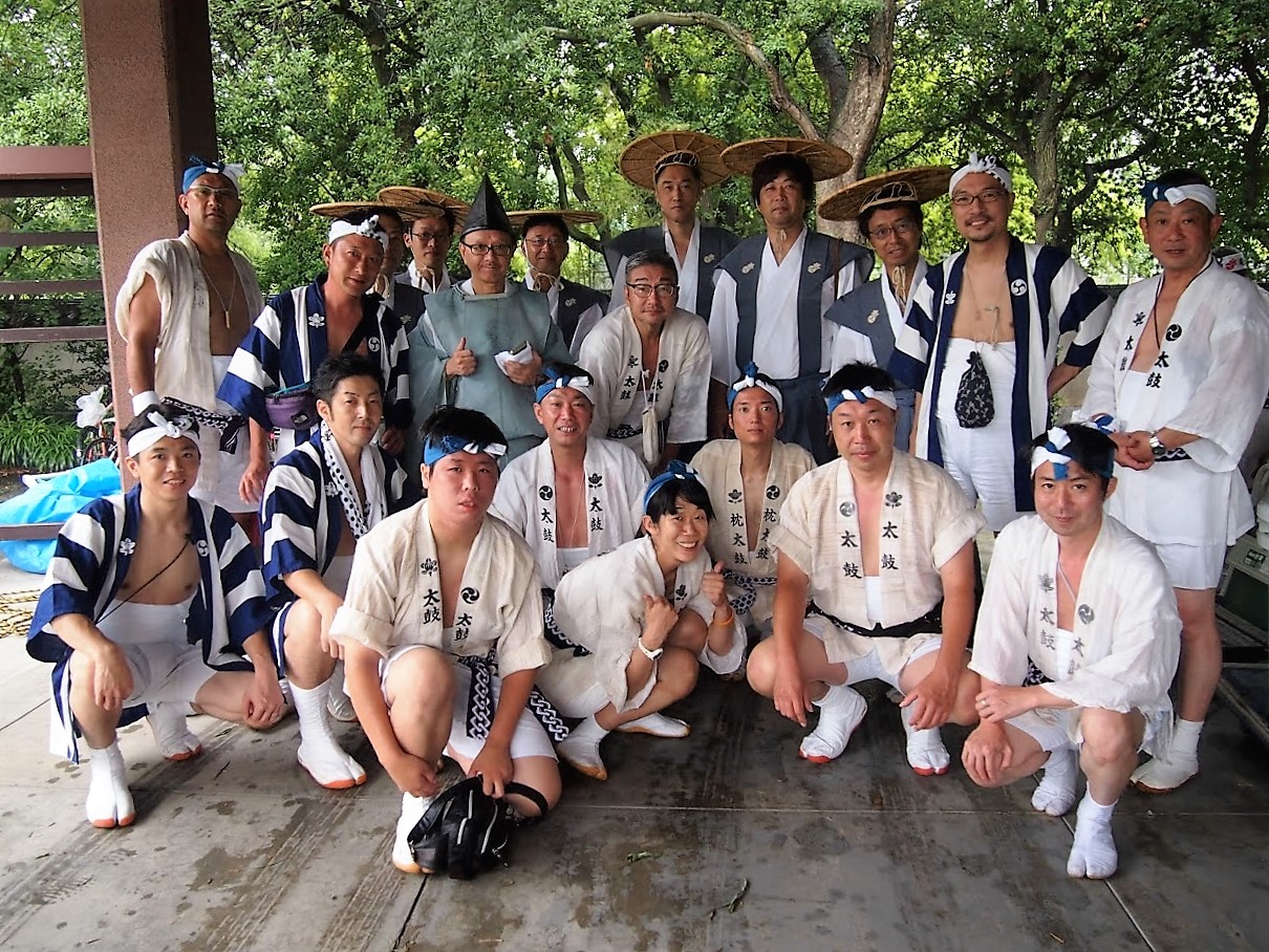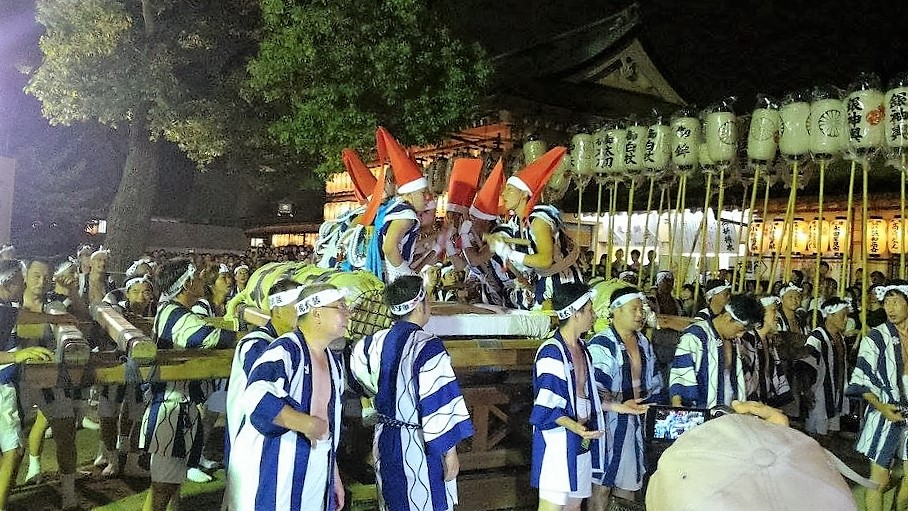 本社から大阪城までご神体を運ぶ御渡巡幸(おわたり)と、夜の祭りのハイライト、枕太鼓のお練りに参加しました。