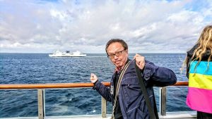 心配顔のぼくに、向かいに座っていた可愛いドイツ人のお嬢さんが笑みを浮かべ、「フェリーに乗るんです。45分ほど。バッグ、忘れたらあきませんよ」と。