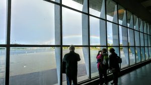 展示されたロングシップから窓の方にふと視線を流すと、何ともきれいな虹がかかっていました~🌈